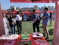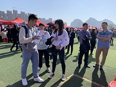 雙選會當天上午8點鐘,我們簽完到,領完掛牌等資料就來到了會場布置場地,當時進場的企業(yè)還不算多。11日上午9時,雙選會正式在該校運動場拉開帷幕。出示邀請函、掃描健康碼、測量體溫……為確保雙選會安全、平穩(wěn)、有序舉行,學院嚴格落實常態(tài)化疫情防控要求,并利用信息化手段完成用人單位參會人員登記和健康狀況審核。隨著時間的流逝,會場的企業(yè)單位及學生越來越多,漸漸就站滿了會場,氣氛十分熱鬧。