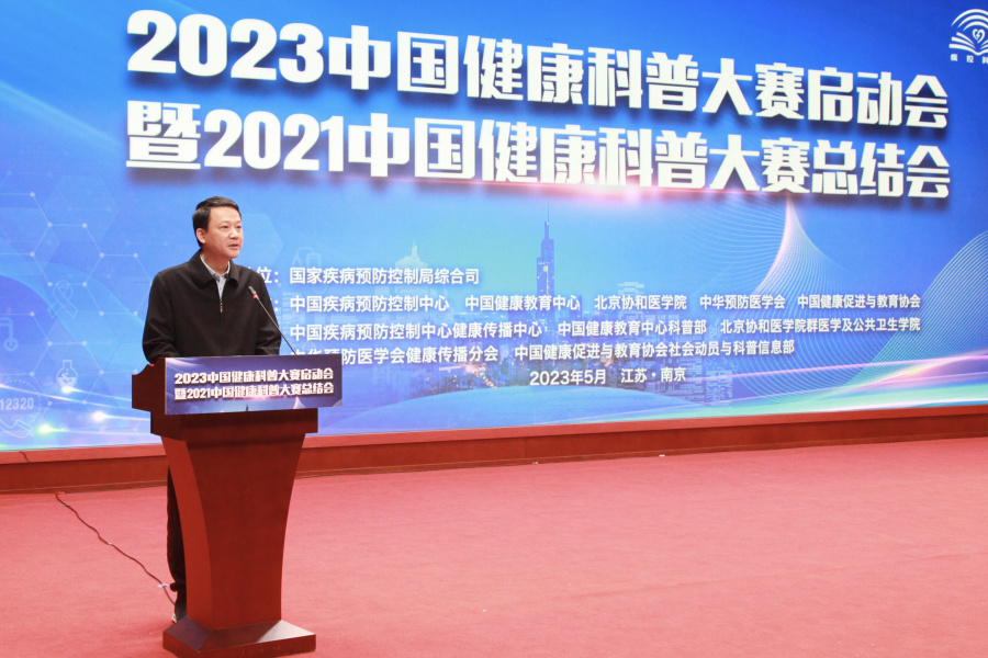 2023年5月5-6日,在國家疾控局的指導下,中國疾控中心聯(lián)合中國健康教育中心、北京協(xié)和醫(yī)學院、中華預防醫(yī)學會、中國健康促進與教育協(xié)會在江蘇省南京市召開2023中國健康科普大賽啟動會暨2021中國健康科普大賽總結會。國家疾控局綜合司一級巡視員熊煌、中國疾控中心黨委副書記周宇輝、聯(lián)合主辦單位負責人及來自全國各?。▍^(qū)、市)及新疆生產建設兵團疾控中心,中國疾控中心直屬有關單位和相關處室的健康教育工作負責人共120余人參加會議。