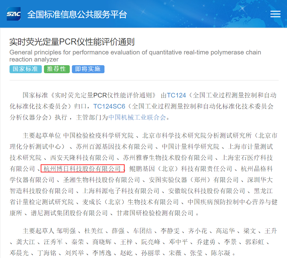作為中國PCR行業(yè)的領(lǐng)軍者,杭州博日科技股份有限公司當(dāng)仁不讓,參與了該標(biāo)準(zhǔn)的制訂。