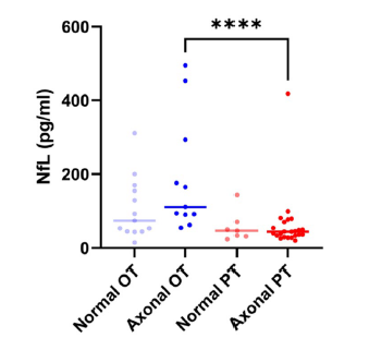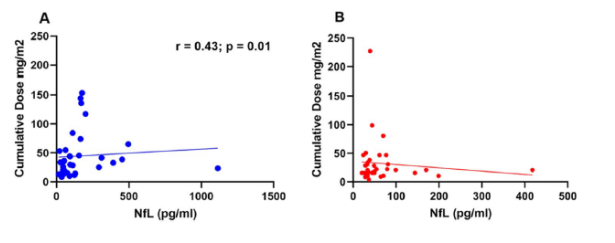 到目前為止,還沒有生物標(biāo)志物可以預(yù)測這種副作用及其嚴(yán)重程度。神經(jīng)纖維絲輕鏈(NfL)是神經(jīng)元神經(jīng)絲蛋白(NF)的重要組成亞基,作為神經(jīng)元軸突主要的細(xì)胞骨架蛋白。既往研究表明病理?xiàng)l件下,如癡呆、多發(fā)性硬化癥、肌萎縮側(cè)索硬化癥等,NfL釋放量顯著增加。