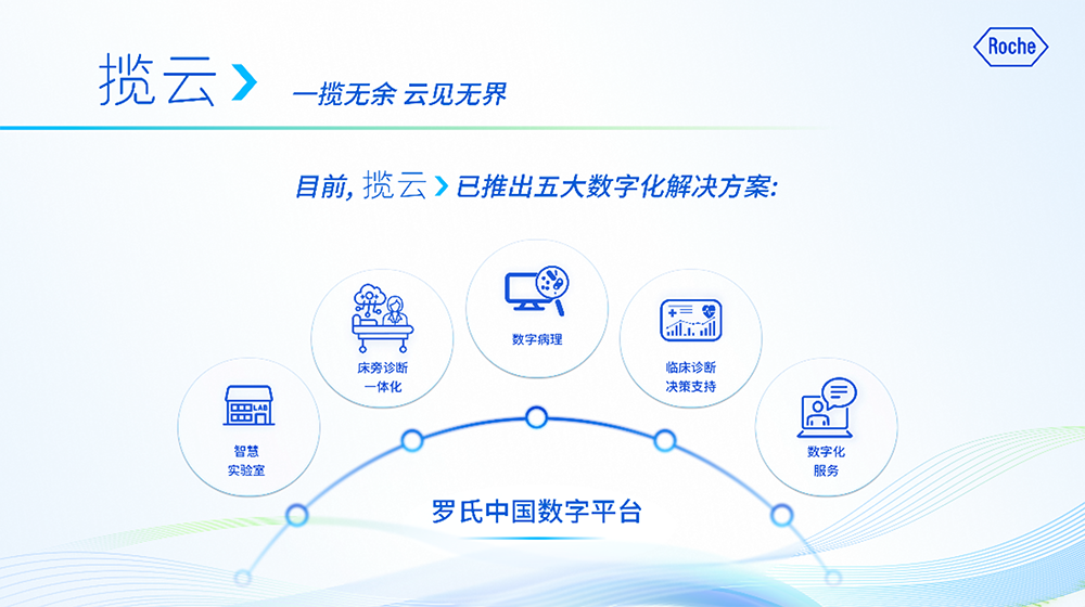 其中,羅氏診斷中國數(shù)字化創(chuàng)新解決方案——攬云,圍繞“革新醫(yī)學檢驗數(shù)字化”、“洞察醫(yī)患決策智能化”、“共建醫(yī)療生態(tài)個性化”三大戰(zhàn)略,展示了智慧實驗室、床旁診斷一體化、數(shù)字病理、臨床診斷決策支持、數(shù)字化服務五大解決方案。