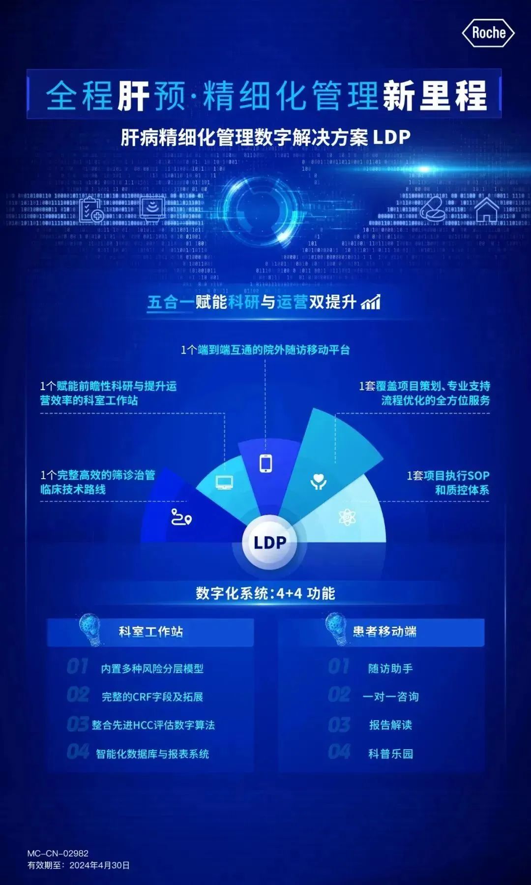 羅氏集團肝癌篩診治管全病程管理數(shù)字解決方案包括肝病精細化管理數(shù)字解決方案和腫瘤全病程管理數(shù)字化解決方案,通過完整、高效的臨床技術(shù)路線,賦能科室工作站進行前瞻性科研和提升運營效率,實現(xiàn)端到端互通的院外隨訪移動平臺,以五合一賦能科研與運營雙提升,并通過由多學科會診模塊、隨訪模塊、數(shù)據(jù)庫及分析模塊構(gòu)成的“三位一體”推動腫瘤綜合診治發(fā)展。