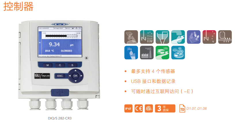 用于中小型廢水處理廠 用于中小型廢水處理廠的控制器,包括 USB 接口和內(nèi)部數(shù)據(jù)記錄儀,最多支持 4 個傳感 器,可測量所有參數(shù)。